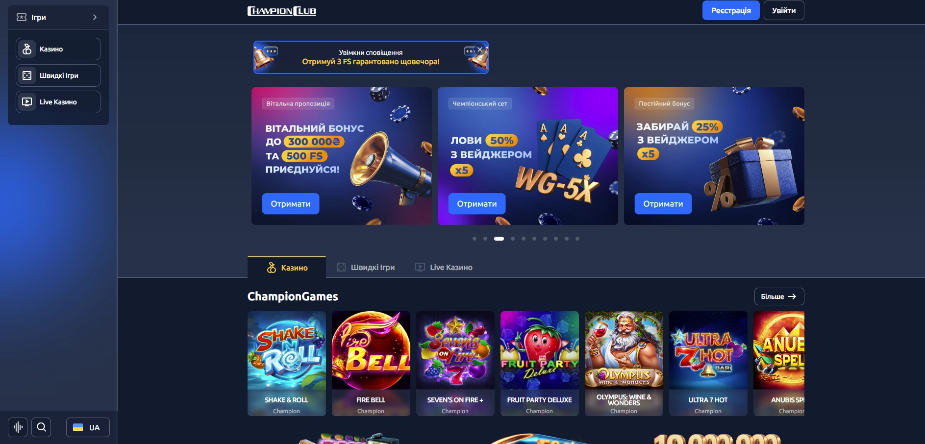 Ігровий Зал Champion Club – слоти, live ігри та турніри